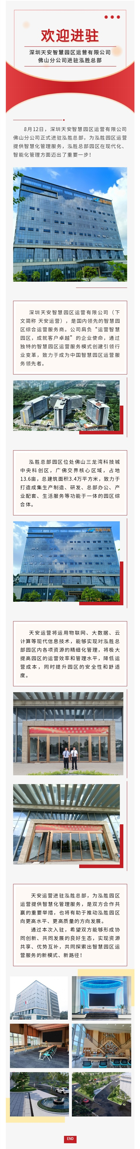 助力智慧园区建设!丨深圳天安智慧园区运营有限公司佛山分公司进驻泓胜总部