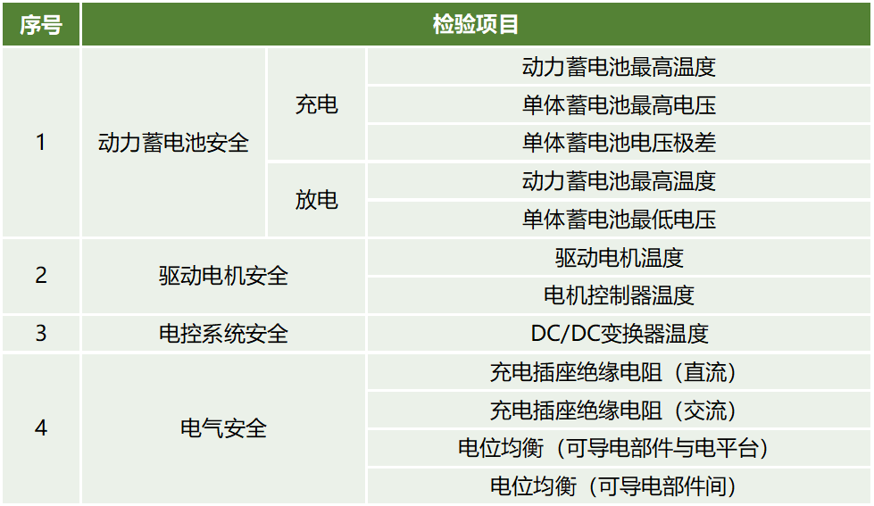值得一提的是,关于新能源汽车检测的国家标准《新能源汽车运行安全性能检验规程》(GB/T 44500—2024)于2025年3月1日起开始实施,对于客货运输企业、二手车交易机构、维修企业、开展新能源专业的大专院校等相关单位都可以选择使用。