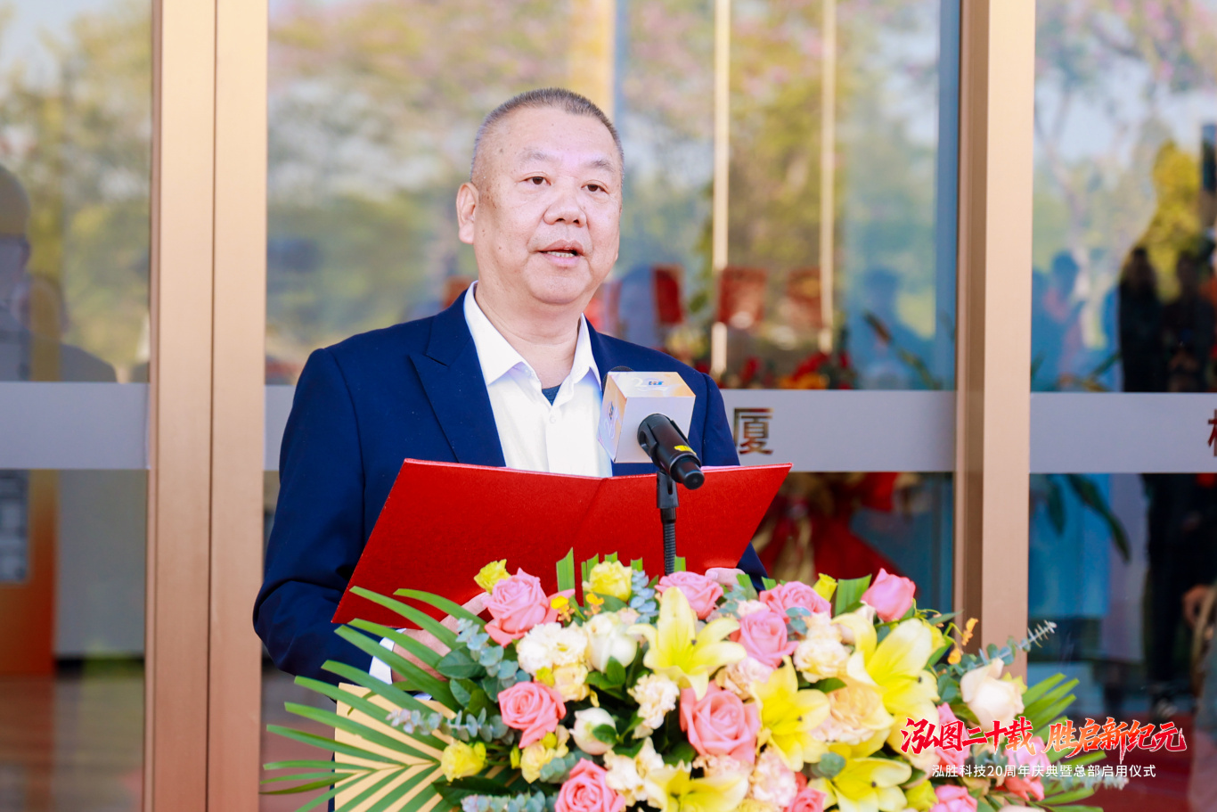 活动以“泓图二十载 胜启新纪元”为主题,既致敬二十年积淀,也彰显扎根南海、立足三龙湾、迈向高质量发展的决心,现场布置简洁大气,嘉宾签名留影,氛围喜庆庄重。