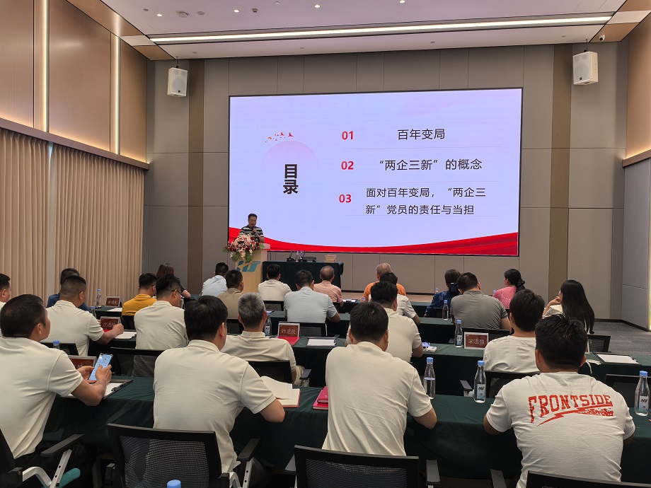 随后,莫拉夫主任以 “中美贸易战” 切入,多维度剖析百年变局,点明党员需以敏锐视角把握时代机遇;随后聚焦 “两企三新”,阐释其在经济社会发展中的关键地位,强调加强党建对巩固社会基础、提升治理水平的重要意义;最后以党员八项义务为纲,针对不同党员群体提出责任担当要求,激励党员立足岗位推动高质量发展。