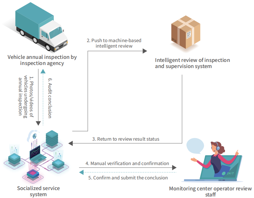 The Intelligent Verification System for Motor Vehicle Safety Technical Inspection, based on computer vision, OCR, and feature comparison technologies, automates the verification of vehicle appearance, document information, and workstation photos uploaded by inspection agencies. The system accurately identifies key information such as license plates, vehicle logos, VINs, warning triangles, seat belts, and vehicle registration certificates, and performs consistency comparisons with business data. Verification results are pushed to the inspection supervision system in real time, achieving a highly efficient transformation from manual to intelligent verification.The system has passed authoritative testing and certification by the Traffic Management Science Research Institute of the Ministry of Public Security and seamlessly integrates with the Ministry's inspection supervision system. The platform supports standard interfaces for automatically acquiring process photos, document forms, and other information for intelligent analysis. It automatically screens for anomalies and transmits them back to the supervision platform, effectively improving the accuracy of the verification process and risk control capabilities.The system possesses high-precision recognition and high-stability output capabilities. Intelligent verification significantly shortens the verification cycle, reduces human error and verification costs, improves the business processing efficiency of inspection agencies and the verification quality of regulatory departments, ensuring the authenticity, standardization, and traceability of inspection data from the source, and promoting the intelligentization of motor vehicle safety technical inspection services.