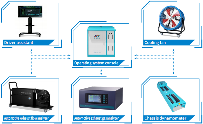 The simplified transient operating condition (VMAS) emission testing system for gasoline vehicles consists of a chassis dynamometer that simulates acceleration inertia and road resistance, a dedicated five-gas analyzer, a gas flow analyzer, and a computer control system. It can analyze the emission quality of vehicles under road load conditions in real time, with results in g/km. This system is crucial for comprehensively evaluating vehicle emissions, estimating total vehicle emissions, and developing practical vehicle pollution control plans.The system has computer networking capabilities, allowing it to connect to environmental protection department data processing centers, facilitating statistical analysis of emission data by government authorities. The system is suitable for VMAS-based emission testing of in-use gasoli vehicle with dedicated gasoline engines and a maximum gross vehicle weight not exceeding 3500kg, using dual-idle conditions.
