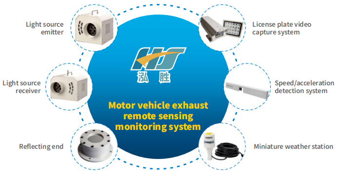 The vehicle exhaust remote sensing monitoring system is a fixedly installed gantry system capable of real-time remotesensing detection ofexhaust pollutants from vehicles traveling on on-way lanes and two-way mult-lane roads. Utilizingspectral absorption technology, it monitors the levels of CO,, CO, HC, NOx, and PM in vehicle exhaust emissions in realtime.The system is an integrated gasoline and diesel design,capable of detecting not only gasoline vehicles but alsodiesel vehicles' opacity,PM2.5, and NH3. The monitoring system features highly integrated hardware, with the operational status of each module displayed on acomputer screen. Based on years of practical experience and redesigned for improved performance,it achieves accuratedetection across multi-vehicle road sections,boasts a high capture rate, and minimizes false alamms.