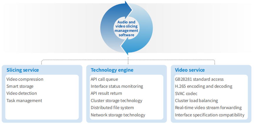 The system employs highly compatible video networkingtechnology,inteligentslicingalgorithms,and a distributed storagearchitecture, enabling real-time slicing,centralized management, and online access to audio and video data related tovehicle and drivermanagement. By connecting with the intelligent analysis service system,it achieves structured recognition of sliced video, providingvehicle management process
